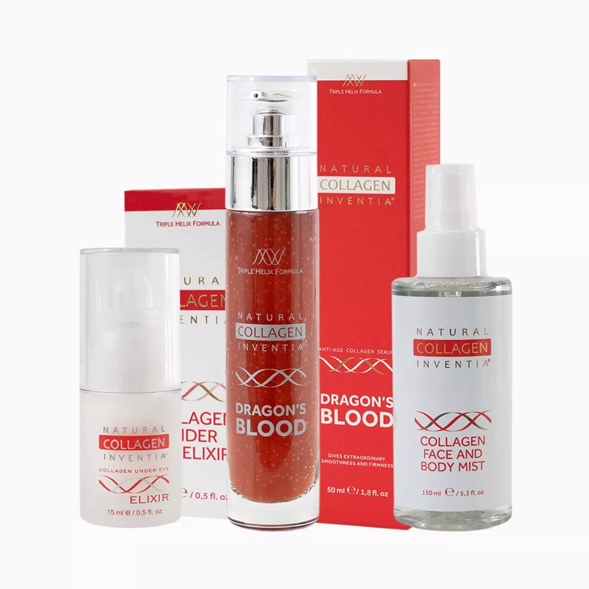 HNejnovější přírůstek do rodiny živého kolagenu nové generace – anti-age omlazující a regenerační sérum s živým kolagenem a dračí krví představuje unikátní spojení nejvzácnějšího hydrátu nativního kolagenu z ryb zpracovaný autorskou technologií Inventia – Triple Helix Formula a magické ingredience – tzv. Dračí krve – tmavě červené mízy ze vzácného Dračího stromu.