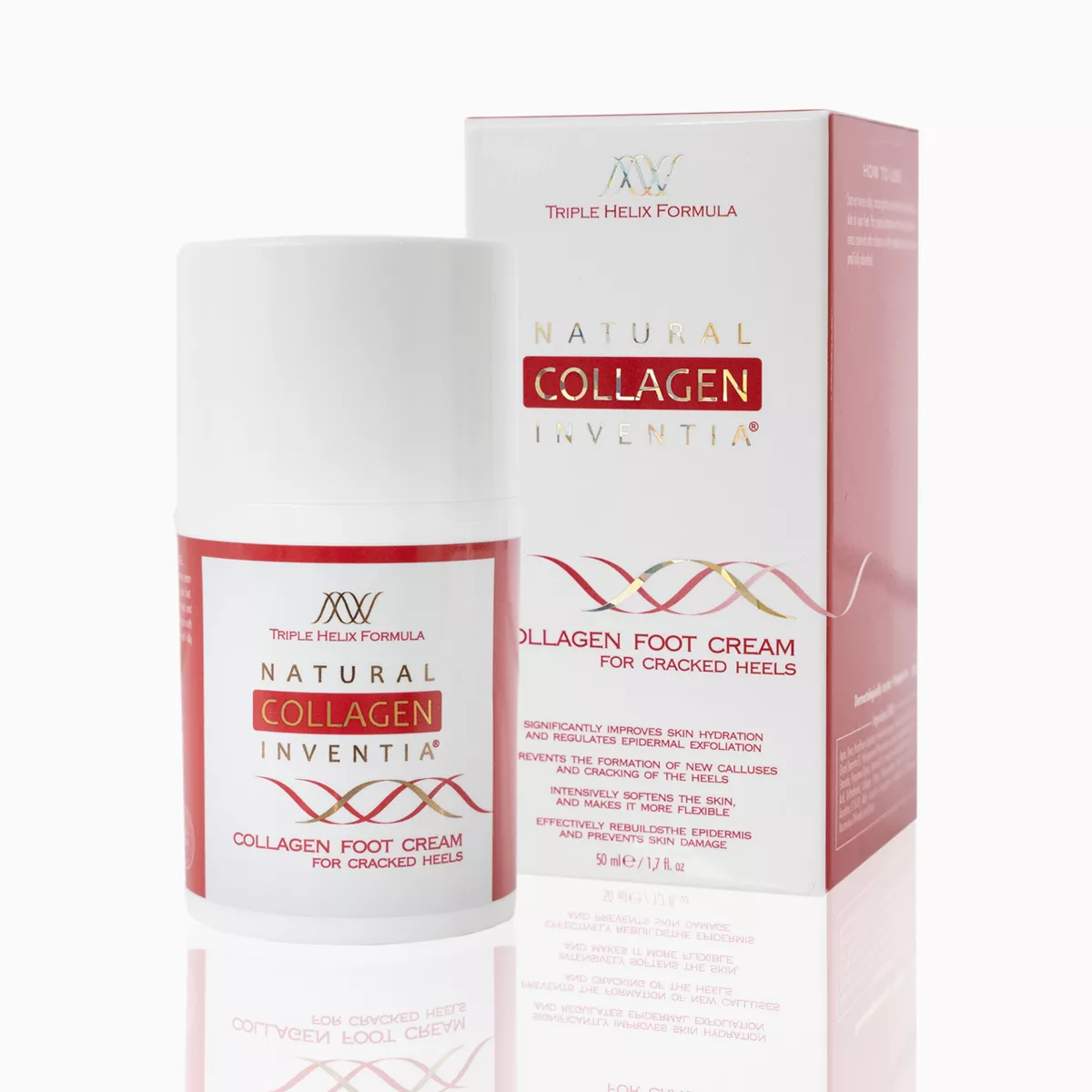 VRegenerační krém na unavené nohy a popraskané paty je založen na unikátní receptuře vybraných látek s prokazatelnými hydratačními a regeneračními účinky. Je obzvláště vhodný pro osoby s tvrdou, suchou a zrohovatělou kůží na chodidlech. Díky vysokému obsahu kyseliny močové dochází k výraznému zlepšení hydratace kůže, jejímu změkčení a omezení procesu šupinatění a rohovatění. Přítomnost D-pantenolu a nativního živého Přírodního kolagenu Inventia® s přirozeně obsaženými peptidy a elastinem příznivě ovlivňuje regeneraci a aktivitu buněk.