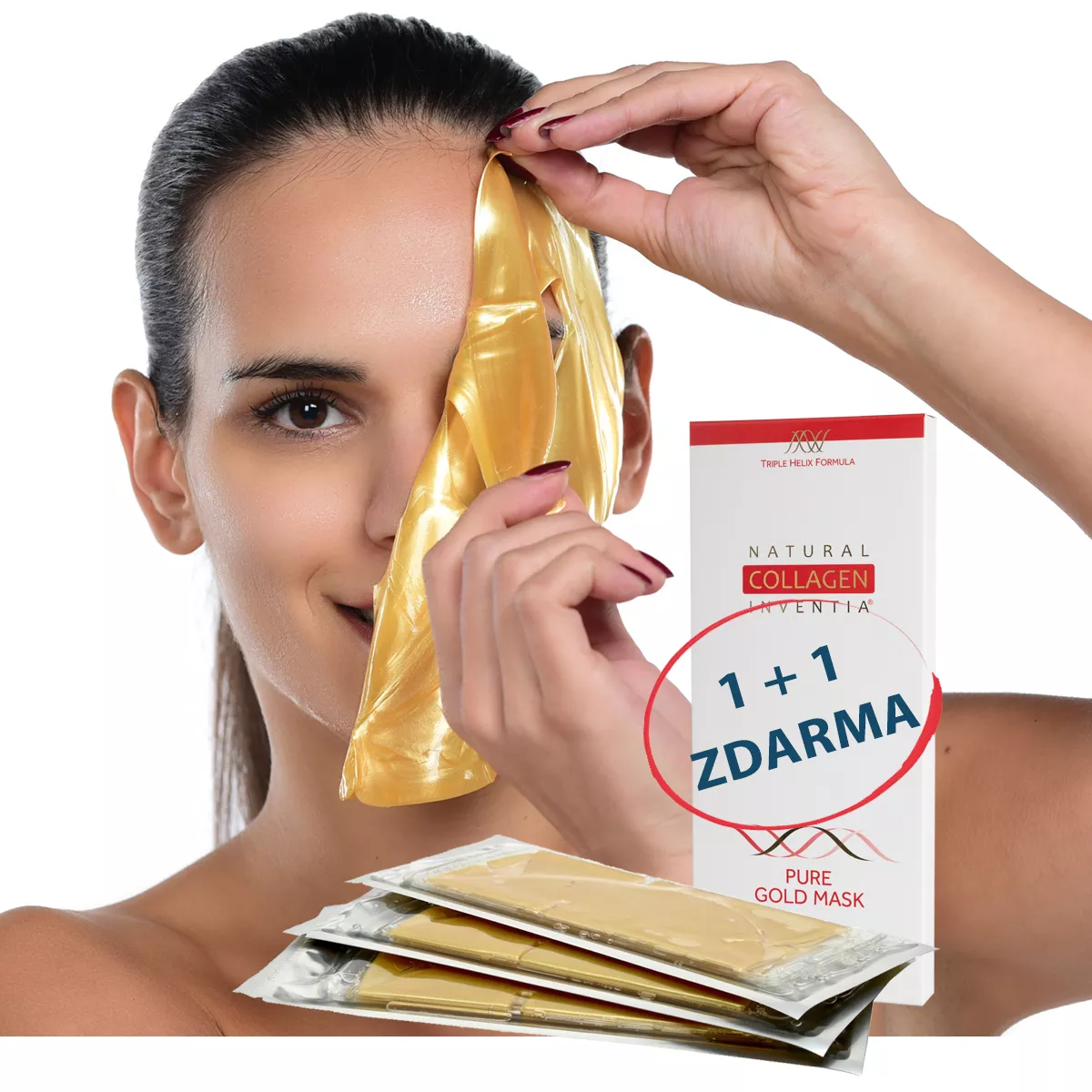 1 + 1 ZDARMA - INVENTIA PURE GOLD MASK WITH NATIVE FISH COLLAGEN - ZLATÁ MASKA S ŽIVÝM KOLAGENEM - 2x 3 ks - Triple Helix Formula